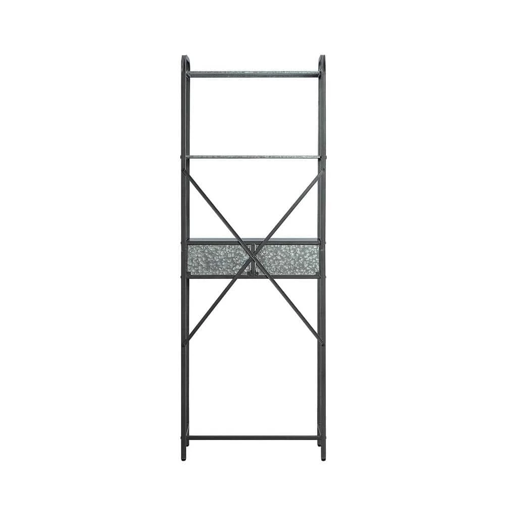 The Montclair Space Saver Collection Duo Drawer Cabinet is a wonderful storage space saving unit for your bathroom. Finished in galvanized metal, the rustic Duo Drawer cabinet will give your bathroom a high end design. Designed with three metal shelves and 2 drawers, this unit is ideal for washcloths, bathroom accessories, knickknacks and any other storage needs. The Space saver fits neatly over your toilet to give that additional storage in your bathroom. This easy to clean item is a great choice for any bathroom in your home. The metal is finished with a powder coated system that makes it resistant to many of the harsh elements in the bathroom. Goes great with The Montclair Space Saver Collection cabinets and tower. Clean with a dry non-abrasive cloth. Assembly required.