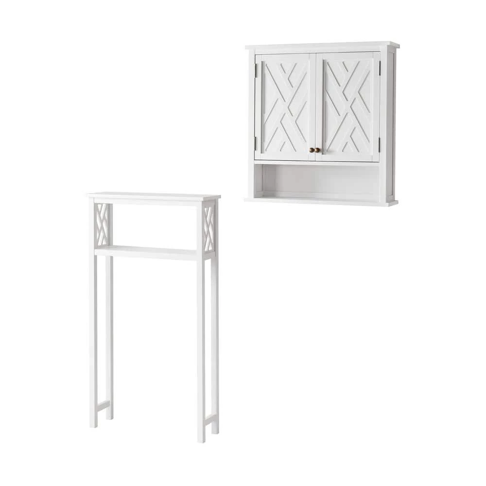 - Over-the-toilet storage unit and bath shelf and wall mounted cabinet add style and utility to your bathroom space