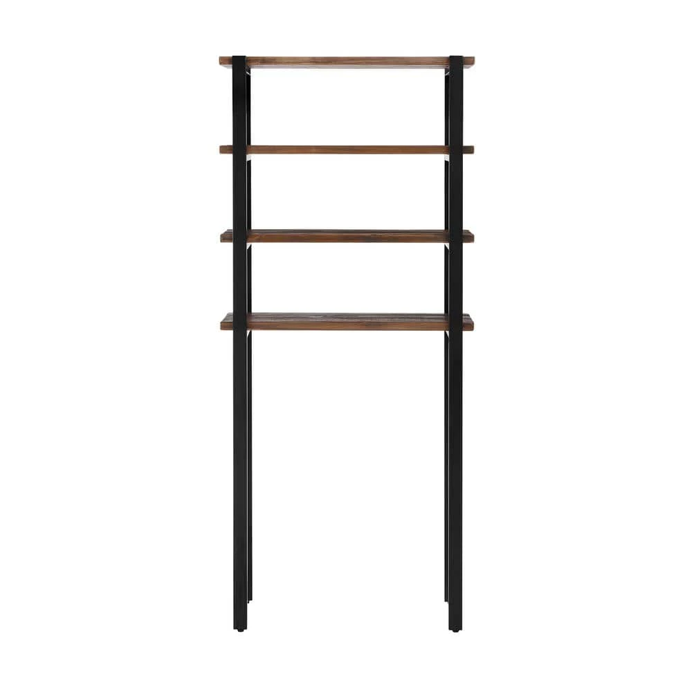 The Pomona 64 in Over the Toilet 4-Shelf Bath Storage features rustic, natural wood with a black metal frame. Classic, space-saving design meets modern farmhouse style with this over the toilet bath storage shelf. This is the perfect space saver for any bathroom that needs extra storage. Perfect for small apartment bathrooms. Add shelf storage space to your bathroom without the need to drill any holes or damage the walls.