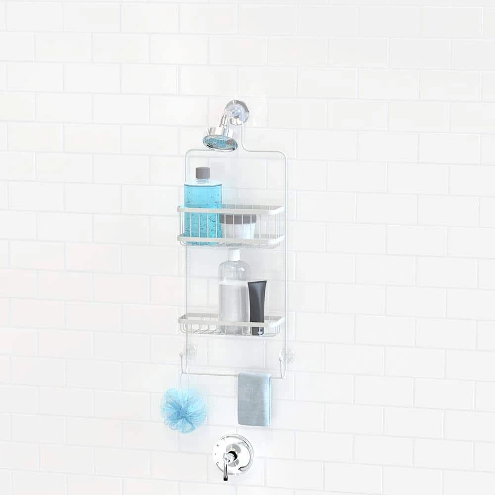 - Features sturdy, welded construction to keep the caddy balanced in the shower; the device will stay put due to the anti-slip collar and suction cups