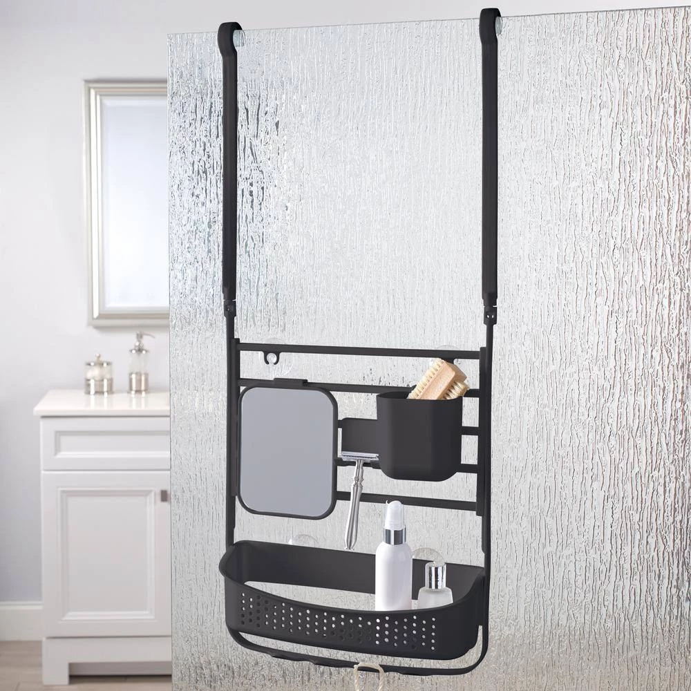 - Includes basket, mirror, razor hook
