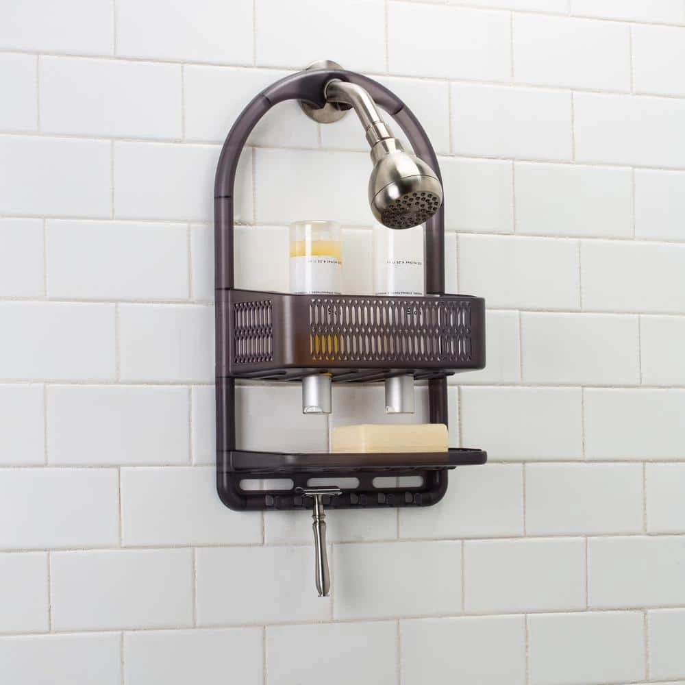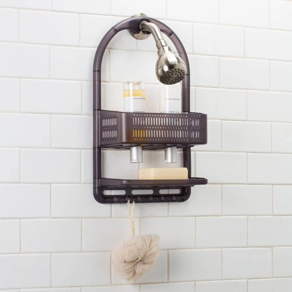 The Bath Bliss Molded Shower Caddy hangs over the shower head to save space, organize, and create extra storage. This caddy has space to store your shampoos and soaps, as well as 6 accessory hooks for loofahs and razors. Your shower essentials will be readily available when you need them. It is constructed of durable material and the 2 suctions cups help keep it sturdy. The simple yet modern design is essential for any bathroom space.