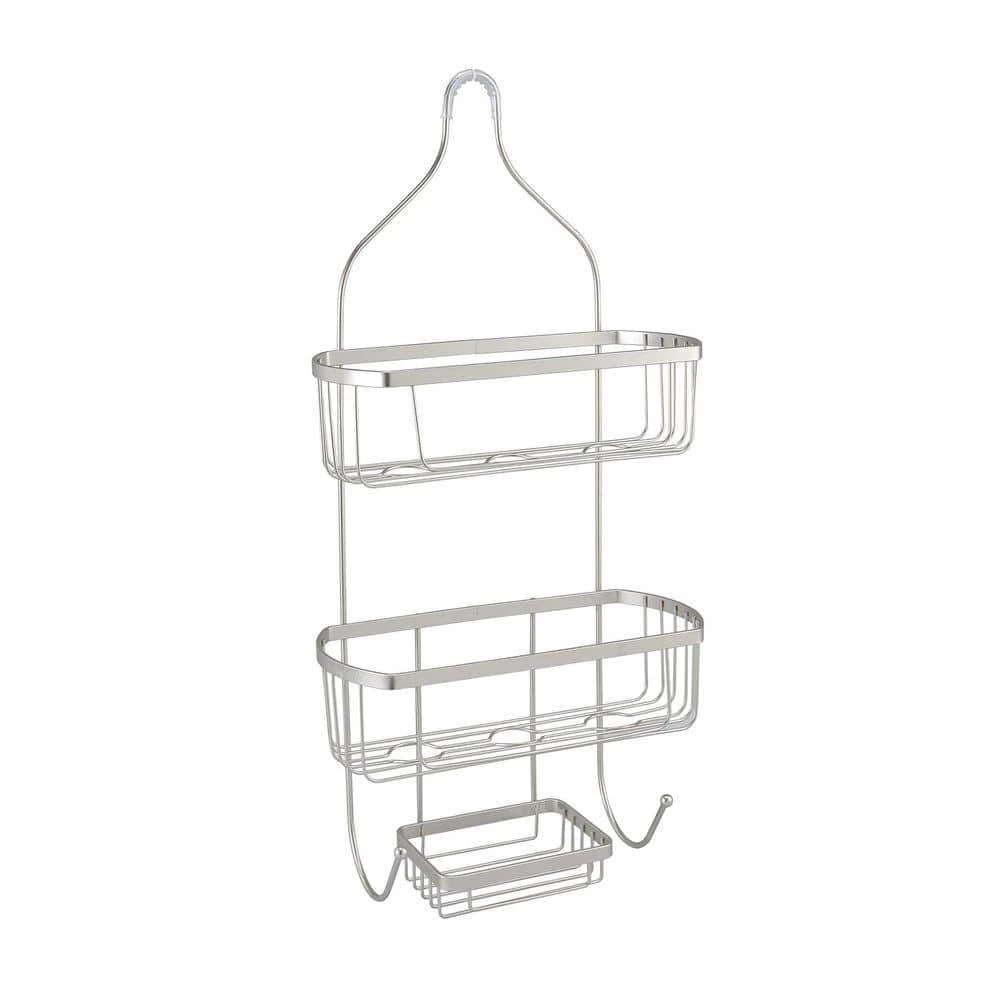 This Bath Bliss satin nickel shower caddy in prince style design helps keep your personal bathroom items handy when needed. It’s design gives your bathroom a chic and royal look that will spruce up any bathroom setting. With it’s three tier design and two hooks, there is plenty of room for you items. Durable construction and rust resistant material makes it long lasting and reliable. Mounts easily in most showers.