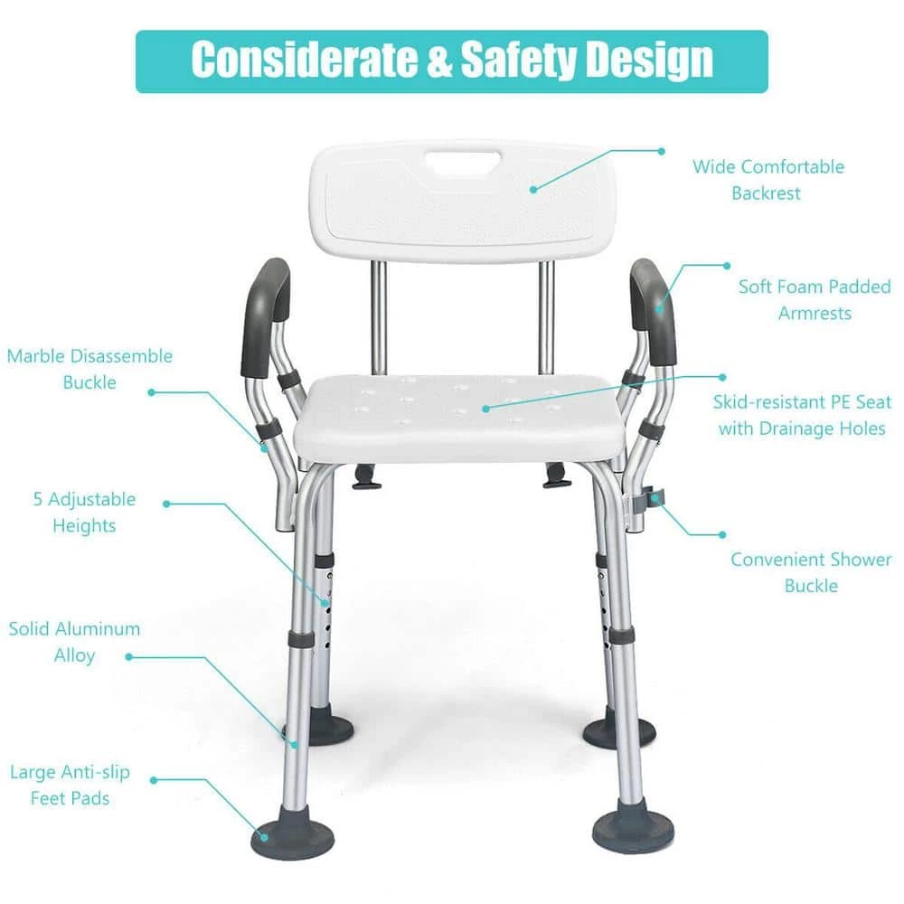 - Easily lifts with Armrest: considering that the chair will become slippery and difficult to lift after bathing, the seat is designed with a padded armrest for extra support and ease of carrying, detachable backrests and armrests satisfy all your needs, and you should hold the armrest to either side to maintain your balance when you’re bathing