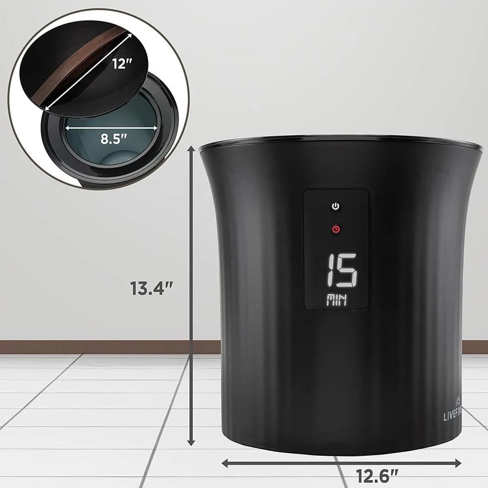 Throw in the towel, turn out the luxury. Chilly air making it tough to dry off? With this bucket style Towel Warmer from LiveFine, anything cotton turns into a comforting embrace! The spa-quality gadget fits up to two towels at a time, ensuring everyone has a perfectly warm towel ready to wrap themselves with. The spacious interior also fits other fabric essentials, including hand and face towels, small robes, hair wraps, neck towels and more. A sleek LCD display features helpful indicator lights and easy button operation. Select your ideal timer, soak in the tub, then prepare for post-bath bliss! The compartment keeps your towel pleasantly warm for up to 20-minutes after the cycle ends. So skip the goosebump-get a Towel Warmer. Extra Large Capacity with room for up to (2) oversized 40 in. x 70 in. cotton towels, the spacious interior ensures comprehensive warming for all your bath time favorites. Fill it up with wash cloths, robes, pajamas and more. Easy-Set Adjustable Timer whether you’re taking a quick shower or long, relaxing soak, the warmer suits your every need. Choose from 15, 30, 45 or 60 minutes; once the towel reaches optimal temperature, it wil stay warm until time expires. Super Chic Design. Exuding luxury and elegance, the warmer’s slim, streamlined construction makes an ideal accent for any size or style bathroom. The cord hides neatly, while built-in stabilizing feet prevent slipping.