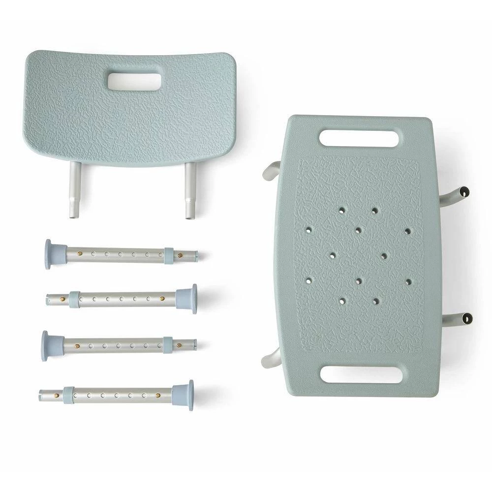 This Medline exclusive product comes with Microban technology that virtually eliminates and fights the growth of microbes that can cause stains and odors on your bath safety products. The increased patient comfort of this bath chair comes from the generous, high-density polyethylene seat and back and angled legs that distribute weight over a larger area. Suction-cup tips on all four legs provide even more stability and safety. The Durable anodized aluminum frame is rust resistant and the handles come with grips to reduce slippage. High density polyethylene seat and back with built in hand grips. Angled legs distribute weight over a large area to increase security. Durable anodized aluminum frame is rust resistant.