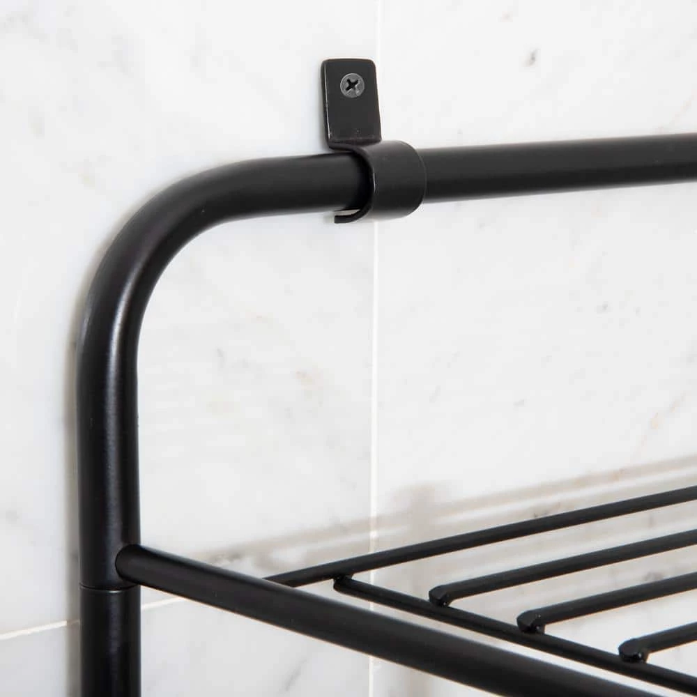 Beautify your bathroom with this space-saving over-the-toilet storage rack from Mind Reader Products. Designed to fit comfortably above your toilet, this sturdy iron rack features three shelves for storing your towels, extra toilet paper, tissues, hair products, makeup essentials, and other bathroom supplies, along with side rungs for hanging hand and face towels. The stylish wire design makes an elegant accent in any bathroom, and offers sufficient clearance to fit over most toilets, so you can add storage to your bathroom without losing extra floor space. The unit resists rust and mildew, and is easily wiped clean with a soft, damp cloth.