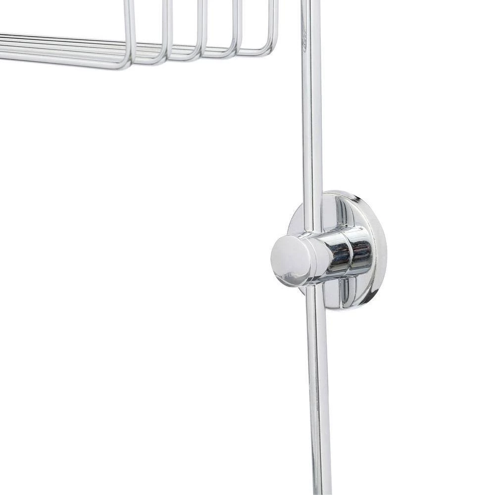 This organizational shower caddy mounts to any hard surface without the need to drill any holes, securely supporting up to 30 lbs. of bath accessories. Simple, stylish and functional, it coordinates with other Draad shower products and pairs nicely with other chrome fixtures in your bathroom for a cohesive look. Spanning 12 in. across and 4 in. deep, it features two shelves to keep showering supplies within arm’s reach, such as loofahs, soap bars, shampoo, shaving cream, conditioner, cleansing gel and more. The unit can be removed easily to clean and reinstall in seconds.