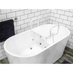 EVEKARE Adjustable Height Shower Seat with Arm Rests in White