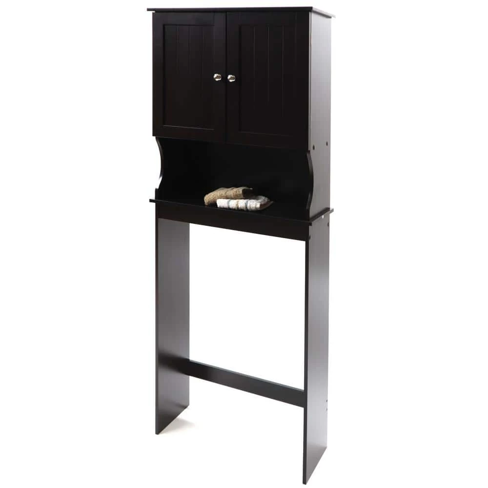 - Two door cabinet space saver with adjustable shelving (stylish hardware included) Four total shelves: Open Bottom and Top shelves (fixed), Two center cabinet shelves (adjustable to 3 positions)