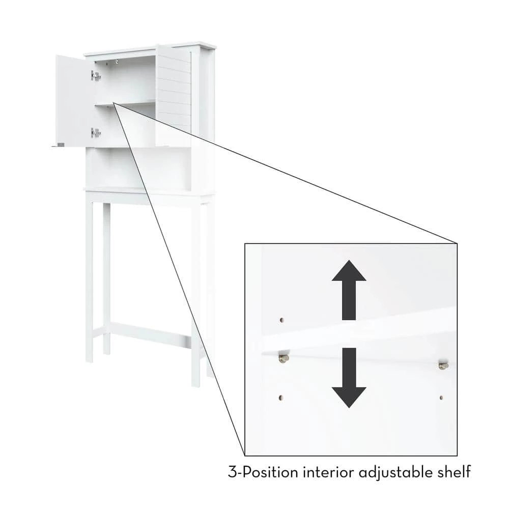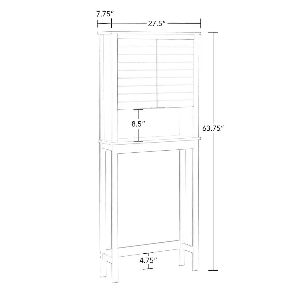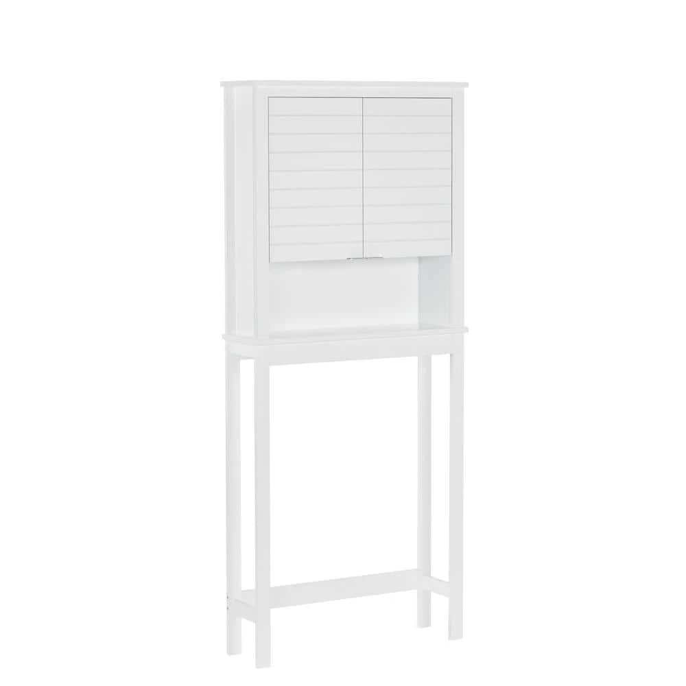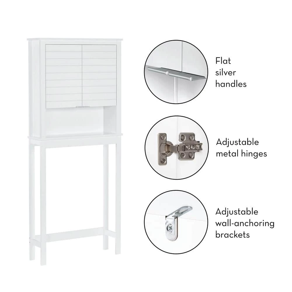 Make the most of the unused space above your toilet with the Madison Space saver. Featuring an open shelf to display accent pieces or store your common items on hand. The 2 interior shelves behind closed doors keep toiletries hidden. The cabinets clean lines make it a perfect addition to any style of decor. Additional dimensions: open shelf: 23.5 in. W x 7.5 in. D x 8.5 in. H, overall cabinet interior: 23.5 in. W x 6.5 in. D x 18.13 in. H, interior shelves: 23.5 in. W x 6.5 in. D, space between interior shelves: adjustable (6.25 in. to 11.23 in.), toilet clearance: 23.5 in. W x 6.88 in. D x 33 in. H.
