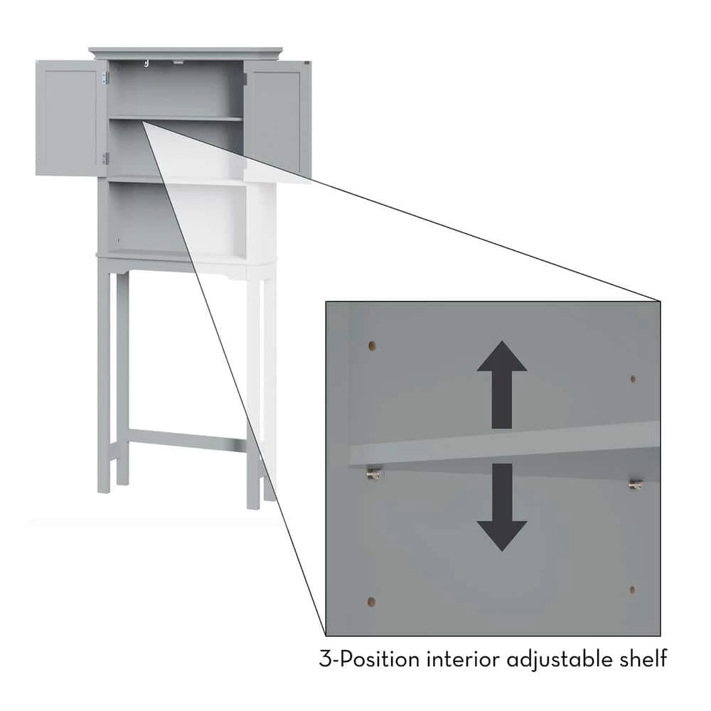 The RiverRidge Home Somerset Collection-Spacesaver Cabinet features classic design and attractive detailing, with inset doors and side panels, coved top shelf and two-tone satin/mirror finish handles. Traditional design complements many styles of decor. Available in white and gray finish.
