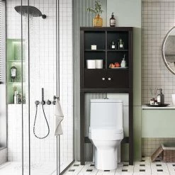 Home Decorators Collection Alster 25 in. W x 65 in. H x 8 in. D Over-the-Toilet Storage in Brown Oak