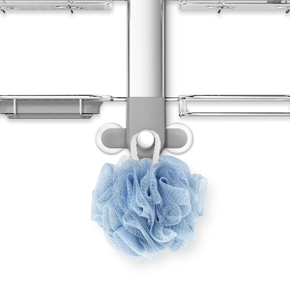- Convenient storage hooks – hold a razor, loofah, or other accessories