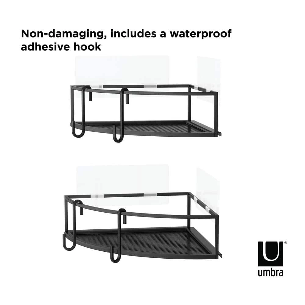 Add elevated storage to your bath or shower space with Cubiko corner bins. These non-damaging shower storage caddies have a modern, bent wire design, making them easy to integrate with a variety of decor styles. Easy to install, Cubiko includes non-damaging, waterproof adhesive strips that can be applied on various surfaces such as tiles, dry wall, concrete, etc. (does not work on porous surfaces). Each bin holds 10 lbs. (4.5 kg) and is made of rust-free metal. Includes 2 metal hooks to hold loofahs, small towels, and more.