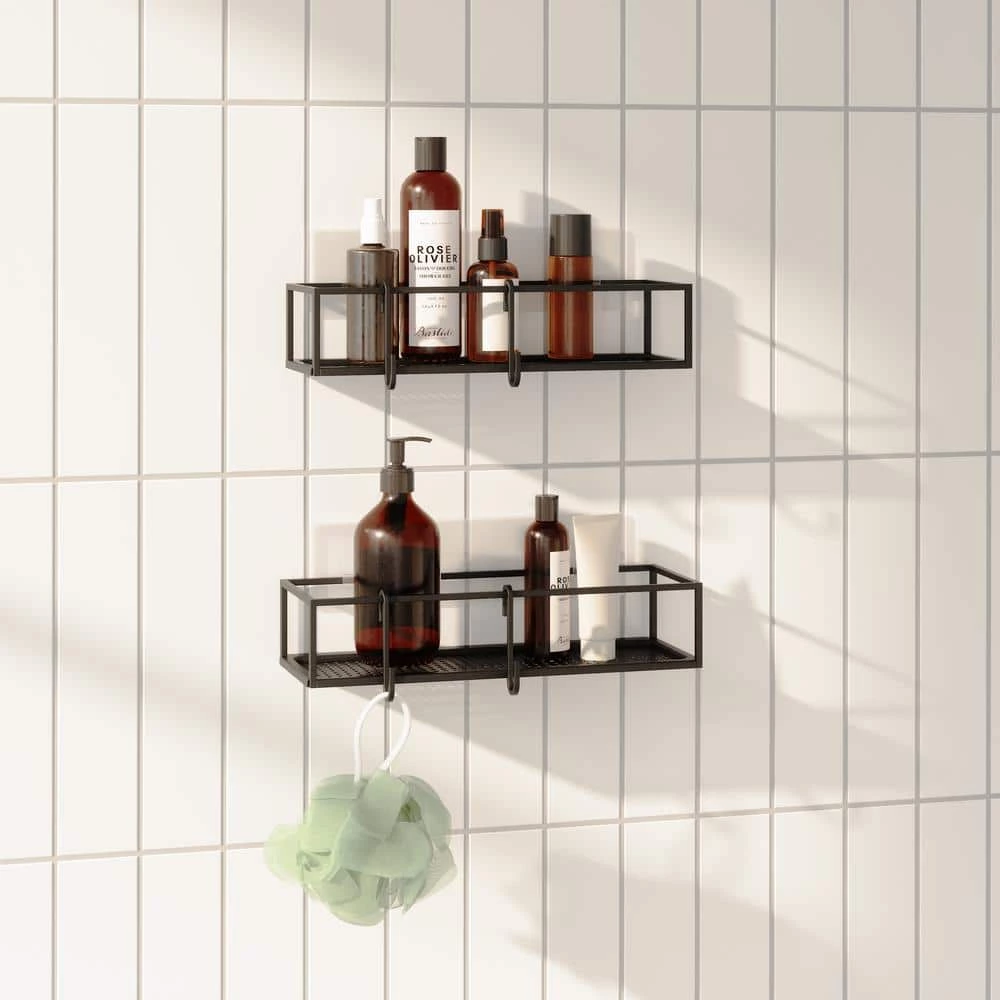 Add elevated storage to your bath or shower space with Cubiko shower bins. These non-damaging shower storage caddies have a modern, bent wire design, making them easy to integrate with a variety of decor styles. Easy to install, Cubiko includes non-damaging, waterproof adhesive strips that can be applied on various surfaces such as tiles, dry wall, concrete, etc. (does not work on porous surfaces). Each bin holds 10 lbs. (4.5 kg) and is made of rust-free metal. Includes 2 metal hooks to hold loofahs, small towels, and more.