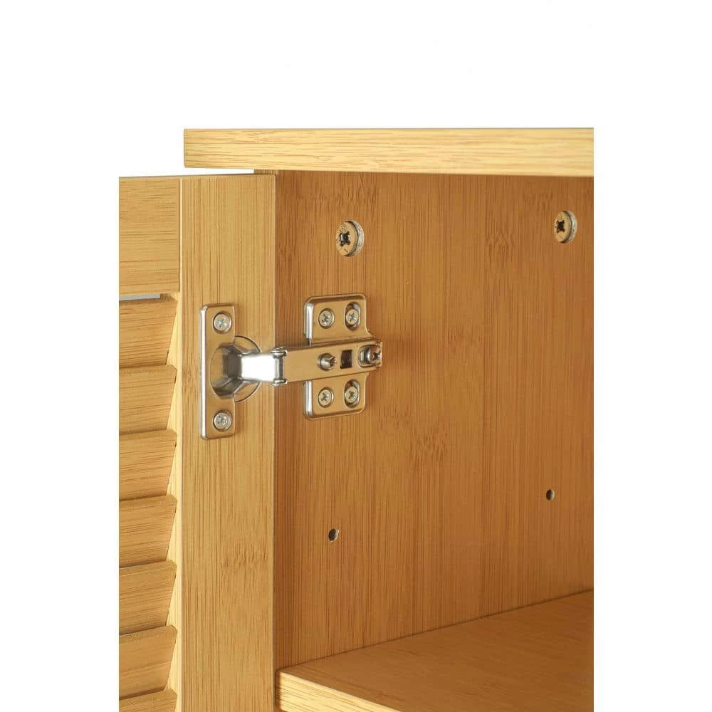 This cabinet made with good quality imitation bamboo material, durable and sturdy. Weaving appearance effect, simple without losing individuality, can easy match with any styles bathroom. The open shelf combines with the cabinet, can give you more place for storage, you can put your shampoo, soap, tissue or other little things on it.