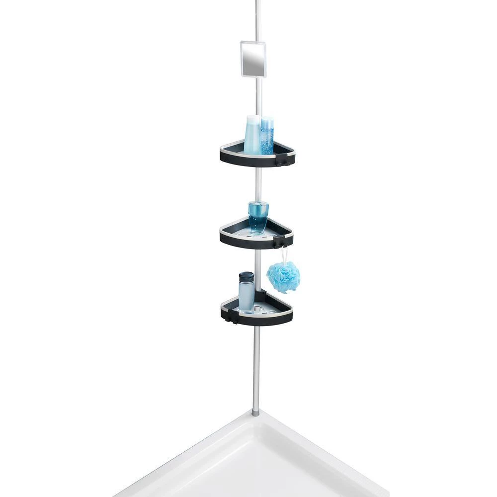 The telescopic corner shelf wave contains 3 corner shelves, hooks, and 1 anti-fog mirror. Made of solid aluminum quality combined with plastic. The corner shelves are universal applicable in showers, and at the corners of the bath tubs. Offers ideal storage for shampoo, soap, and loofahs.