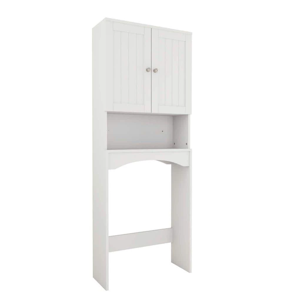 The dimension of this cabinet is 23.6 in. x 9 in. x 61.8 in. This over-the-toilet storage shelf is a sleek and clean design of contemporary simple lines. With a fine neutral finish, it offers a touch of understated style and utility to your bathroom. All the features make such a small shelving unit a visual feature to bring your bathroom to life.