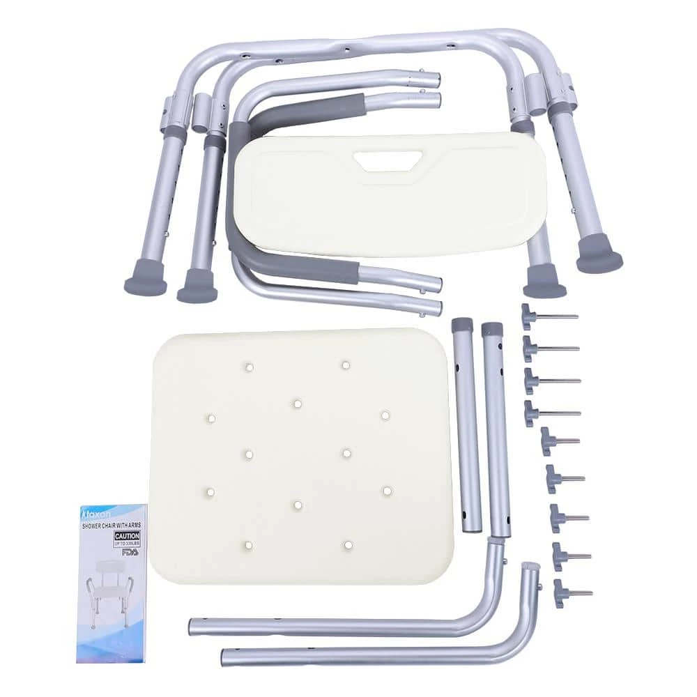 This Aluminum Alloy Bath Chair is an excellent choice. It is made of high quality plastic and rubber; aluminum alloy material, with a light weight and practical design. Moreover, Standard adjustable, so that you can adjust to the most comfortable height. The chair foot mat also features anti-skidding and anti-rust design, so you can rest assured to buy it.