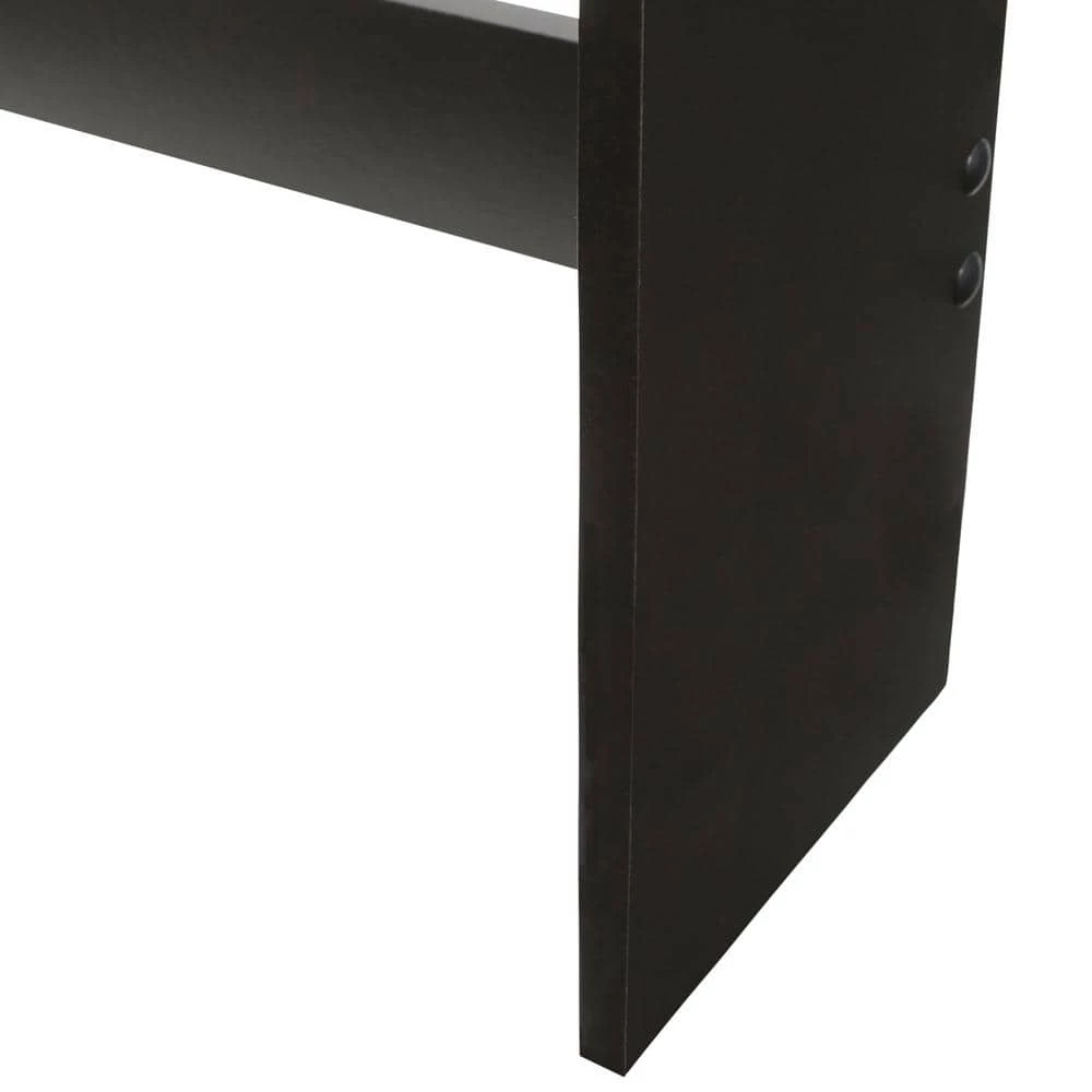 - Espresso wood finish and polished chrome hardware complement almost any bath decor