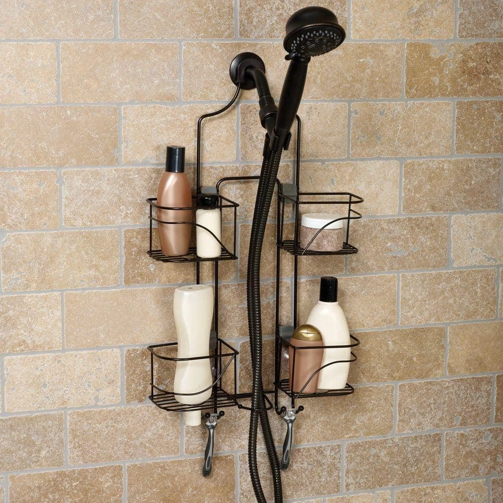 The Zenna Home Expandable Over-the-Showerhead Caddy is the perfect storage solution for showers with handheld and massage showerheads. Organize your shower instantly with this expandable handheld showerhead caddy. This unique caddy has four baskets that expand outward on a sliding mechanism to allow space for a handheld shower hose or to help organize for large/tall bottle storage. When the caddy is expanded, the washcloth holders help contain the shower hose when it is not in use. The caddy features an attractive bronze finish that is rust resistant. A non-slip collar and suction cups hold the caddy securely on any standard showerhead to prevent swaying or slipping. Zenna Home’s US-based Customer Service department is available toll-free (800-892-3986) to answer any additional questions.