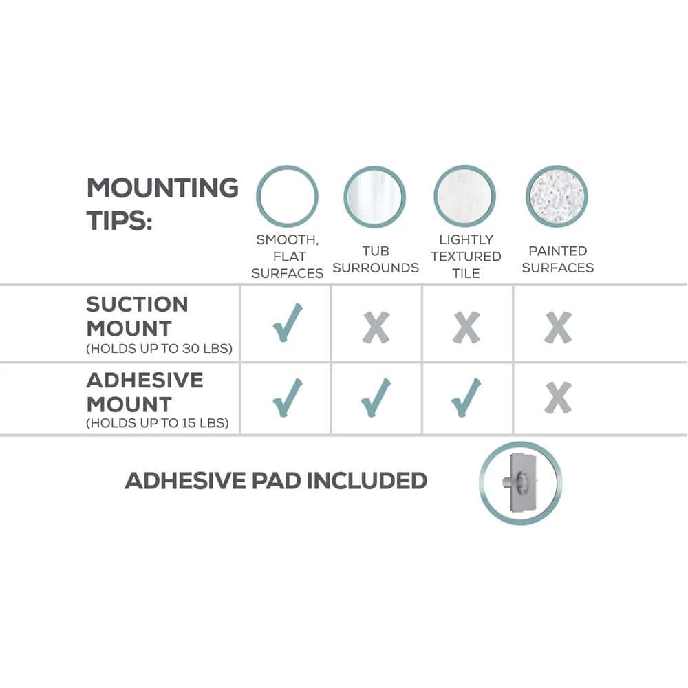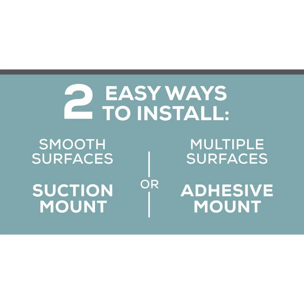 - Dual-mount options: choose either Power Grip Pro suction technology or adhesive-mount installation