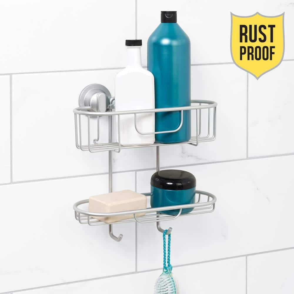 This Zenna Home NeverRust Power Grip Pro Caddy adds 2-tiers of valuable storage anywhere you need it inside your bath or shower. The caddy is made of strong and lightweight aluminum and is guaranteed for life against rust. Installation is easy, with 2 secure mounting options: Power Grip Pro suction technology or adhesive mounting.