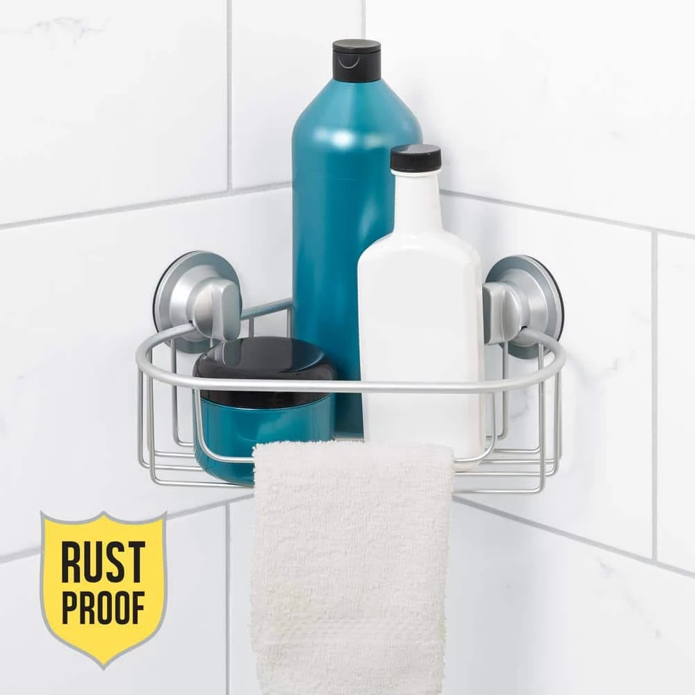 Add rustproof storage into the corner of your shower with the Zenna Home NeverRust Power Grip Pro Corner Basket. With its strong and lightweight aluminum construction, this shower storage basket has a lifetime guarantee against rust. Installation is easy, with 2 secure mounting options: Power Grip Pro suction technology or adhesive mount.